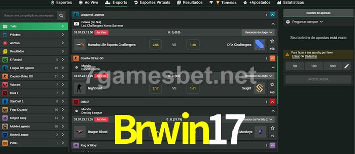 O Brwin17 oferece uma grande seleção de opções de apostas em e-sports com probabilidades competitivas
